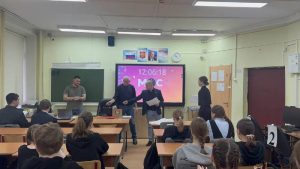 После проведения беседы победители конкурса рисунков и сочинений, посвященных Дню Героев Отечества, получили призы. Ученикам также показали видеоролики на патриотическую тему и материалы, которые продемонстрировали примеры проявления мужества.